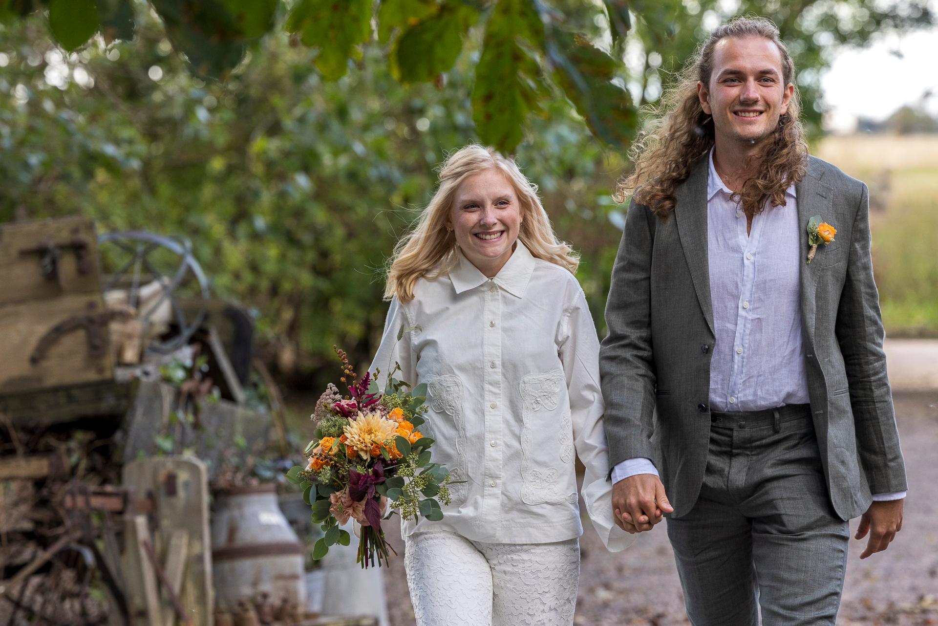 Äntligen är brudparet på väg in till vigseln. Lite pirrigt är det allt. Som vi alla har väntat!